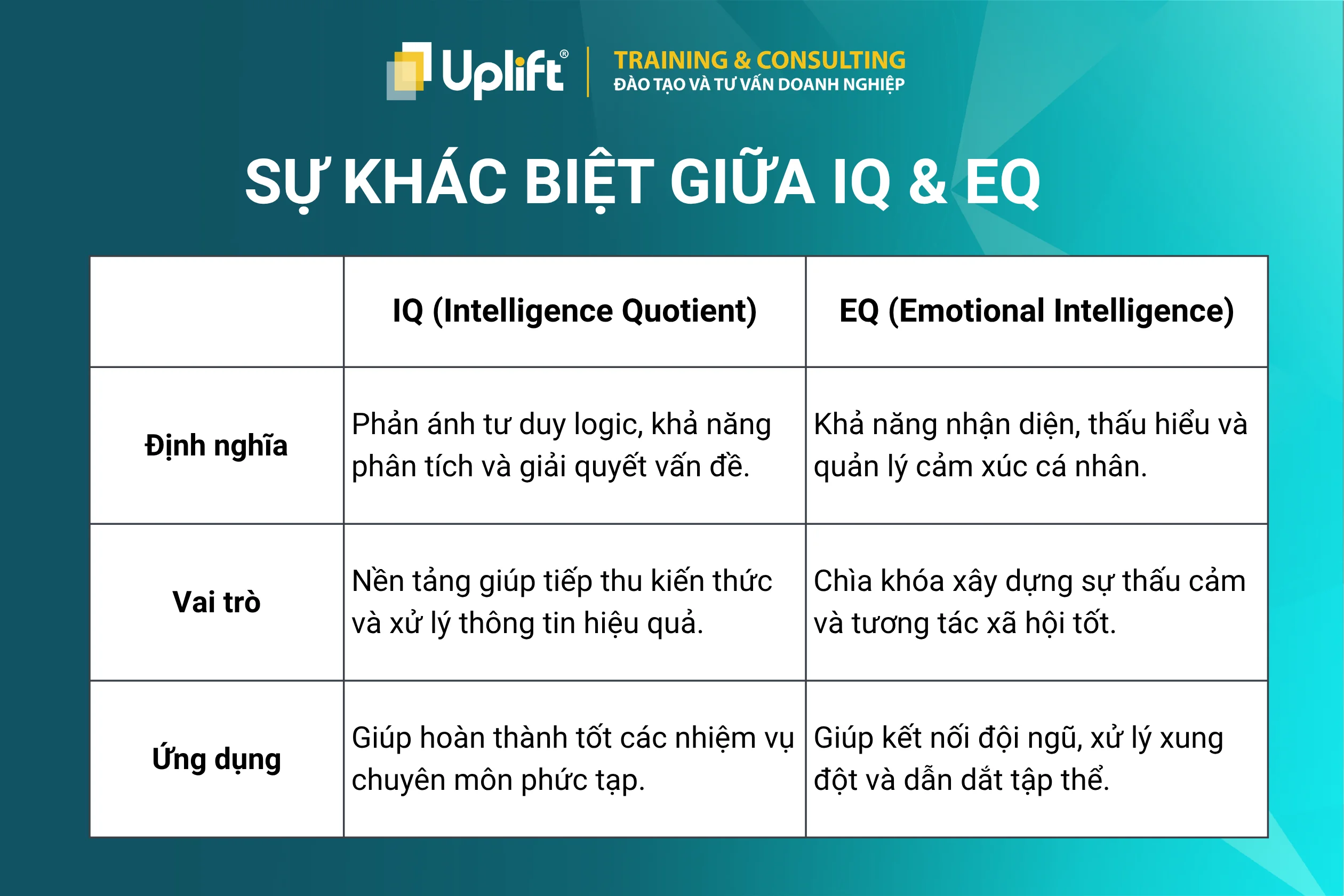 Trong thực tế, IQ giúp một cá nhân được tuyển dụng nhờ năng lực chuyên môn, nhưng EQ lại là yếu tố quyết định khả năng phát triển bền vững và thăng tiến.